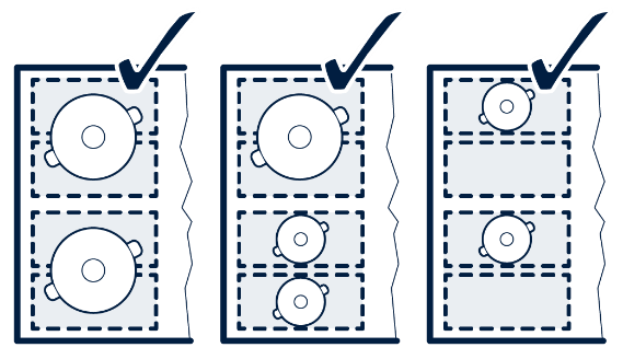 2. lehetőség: Egy kisebb és egy nagyobb méretű főzőfelület